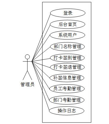 人脸识别考勤系统管理员角色用例图如下所示。