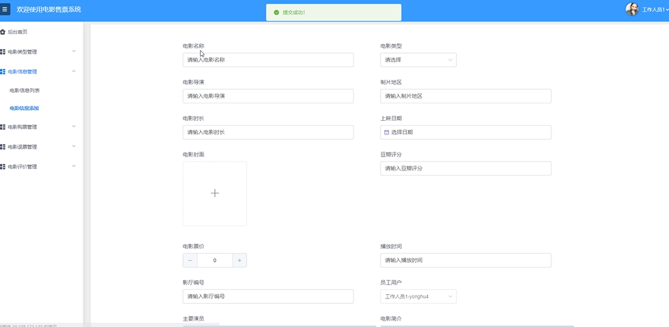 电影信息管理:员工可以全面管理电影的详细信息,包括上映时间、票价、剧情简介等,确保电影信息的准确性和时效性。