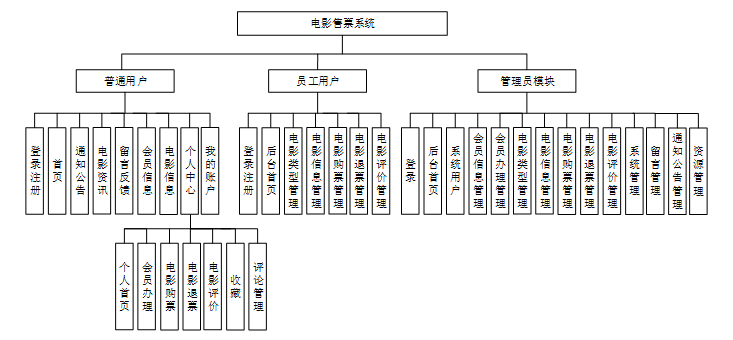 电影类型管理、电影信息管理、电影购票管理、电影退票管理、电影评价管理
