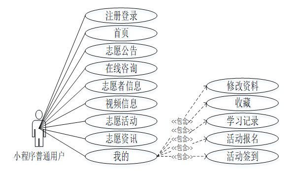 This system comprises three major modules: the mini-program end, the web page end, and the management backend. Users can browse through the carousel, volunteer announcements, news, and event information via the mini-program or web page end, and perform functions such as online comments, likes, favorites, and reviews. Regular users can modify personal information, register for events, view learning records, and check in. The management backend supports comprehensive management of volunteers, videos, events, and resources, and provides features like message replies, check-in statistics, and permission controls, fully supporting the digital operation needs of the Youth Volunteer Association.