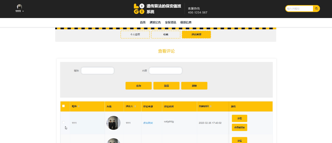 With the continuous development of society and the enhancement of safety awareness, the reasonable scheduling of security personnel has become an important part of maintaining public safety. Traditional duty scheduling methods often rely on manual experience, which can lead to resource waste or personnel difficulties. To address this issue, this article introduces information technology to implement an efficient and convenient security duty system, in order to improve the efficiency of security duty management. The system uses Python programming language, Django framework to implement system business logic, MySQL database for data storage, and genetic algorithm for analyzing and predicting user behavior data to achieve personalized services, intelligent optimization of duty arrangements, and optimal resource configuration. Targeting both registered users and administrators, core functions including registration and login, user management, duty type management, duty information management, system management, notification and announcement management, and resource management have been implemented, which can effectively meet the business process of duty management. Ultimately, the effectiveness and stability of the system's functionality will be verified through testing. The successful development of this system can provide new ideas and methods for social public safety management, not only improving the efficiency of security duty management, but also enhancing the personalized experience of users. It has important promotion significance and application prospects in practical applications.
