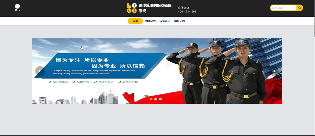 - 首页:提供系统搜索、轮播图、功能导航等重要展示和功能入口,方便注册用户快速获取系统概览信息,并提供值班信息推荐等内容。