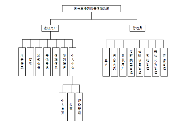 根据用户需求和用例分析,本保安值班系统设计可以划分注册用户模块和管理员模块两大部分。以下是各用例具体功能模块说明。