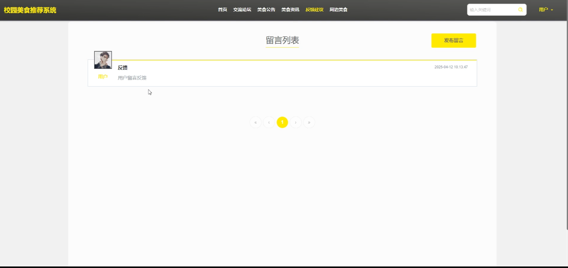 随着校园生活的多样性与个性化需求的不断增加,学生对于校园美食的需求越来越高,面对丰富多元的美食,学生常常出现选择困难的情况。因此,本研究引入k-means算法设计并实现一个便捷智能的校园美食推荐系统,以帮助学生更好地选择心仪的美食,提升就餐体验。该系统采用Java语言和Spring Boot框架进行后端业务开发,使用Vue框架构建前端交互界面,配合MySQL数据库实现数据的高效管理和安全传输储存。同时系统通过k-means算法进行聚类分析,通过收集分析用户历史行为数据以实现个性化推荐,为用户推荐更符合其喜好的美食内容。针对普通用户和管理员两大角色,本系统设计了数据分析、角色管理、美食分类管理、周边美食管理、系统管理、留言管理、美食公告管理、新闻管理、交流管理等核心功能,通过实现模块化功能和细化管理流程,优化了系统的整体性能与用户体验。通过系统测试与用户反馈,证明该系统具备良好的稳定性和可扩展性,能够有效管理效率和用户体验。本研究的成功实现,不仅能够有效满足用户的个性化美食需求,优化学生就餐体验,提升校园生活质量,还能通过数据分析为学校食堂或餐饮商家的管理提供有益的参考,具有积极的实际应用意义。