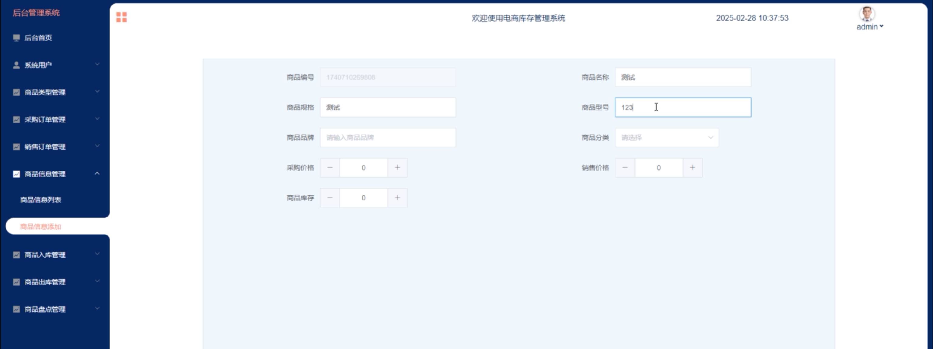 添加商品信息功能测试: