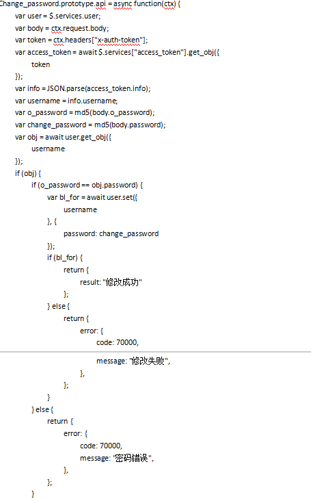 修改密码代码在controller文件下的change_password.js ,代码如下:其中包括md5加密,代码如图所示。