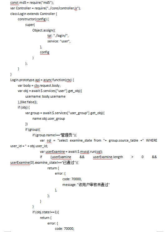 登录代码在controller文件下的login.js ,代码如下:其中包括md5加密,代码如图所示。