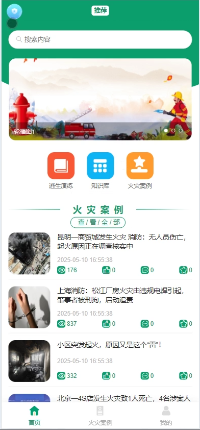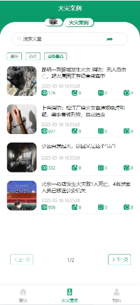 - 火灾案例:当用户点击“火灾案例”这一按钮时,可进入火灾案例展示页面,支持搜索和浏览火灾案例详情内容,进行点赞、评论、收藏操作。