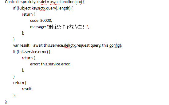 删除一条数据代码在core文件下的controller.js ,代码如图示。
