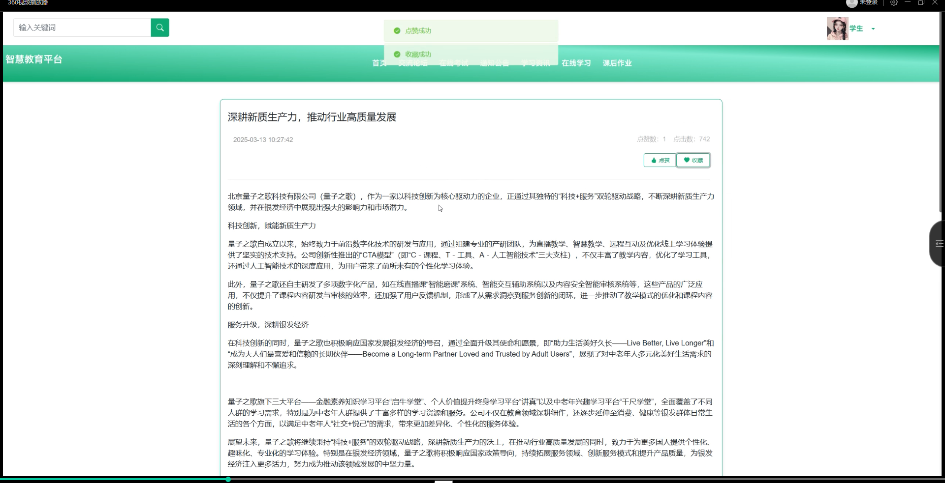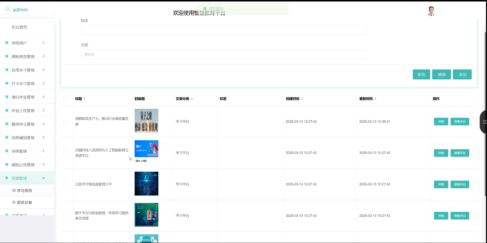 资源管理:管理学习资讯的发布,设置资讯的分类,确保学习资源及时更新。