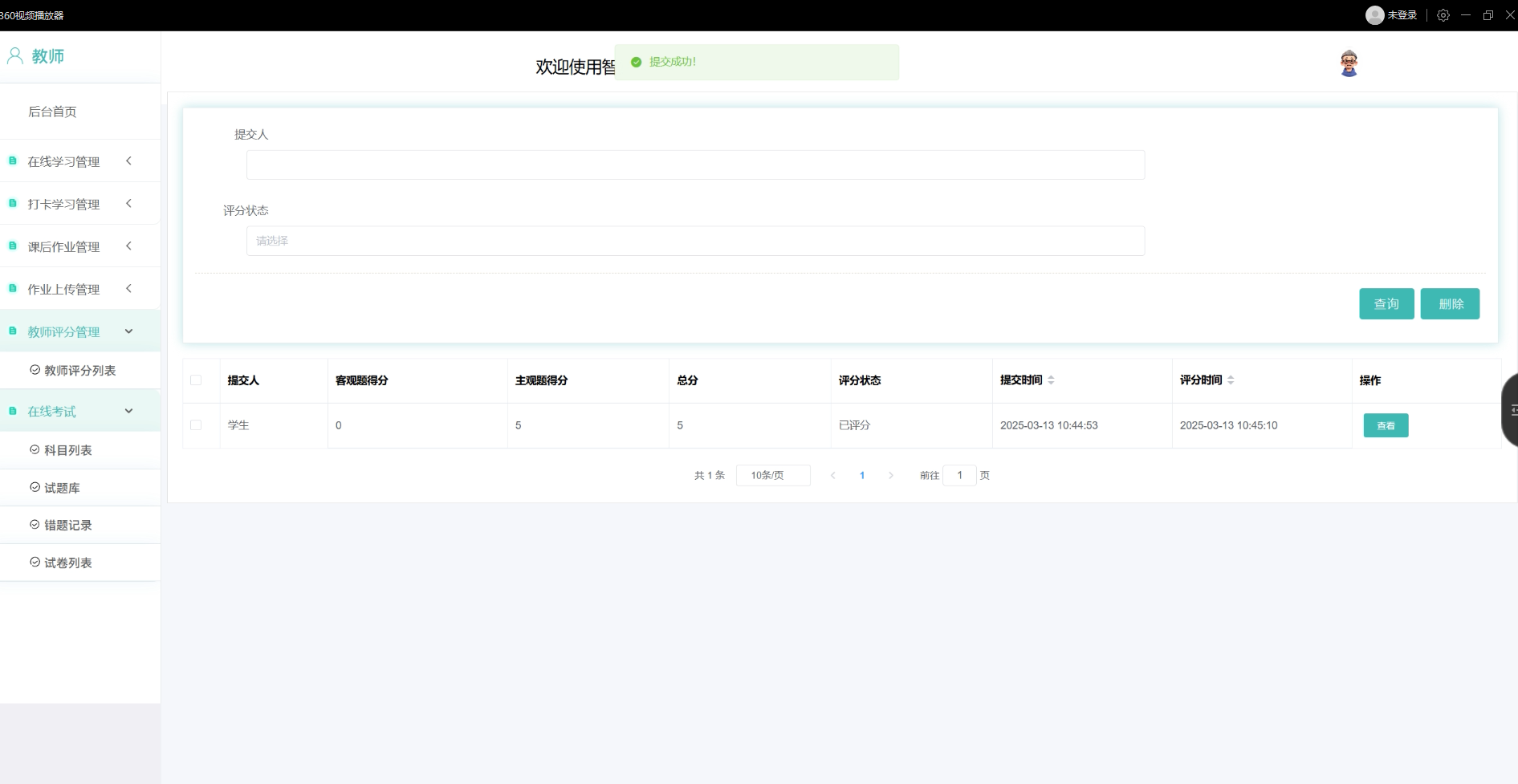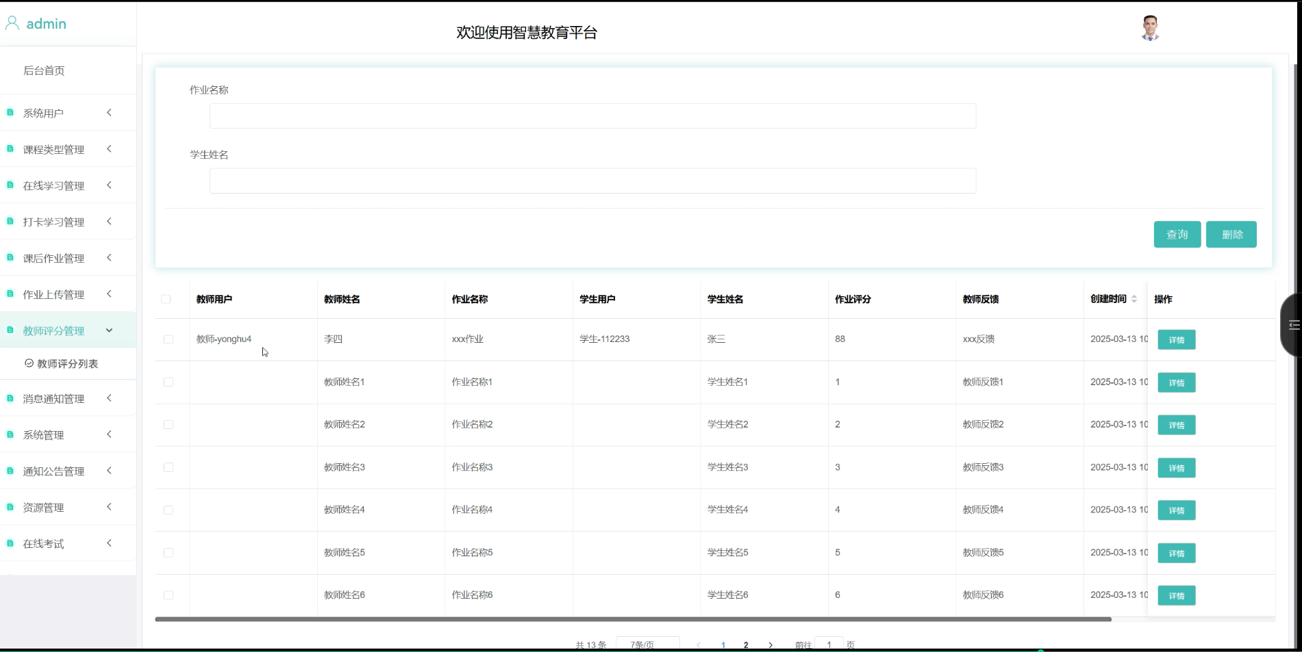 教师评分管理:对学生的作业和学习表现进行评分,并给出评价。