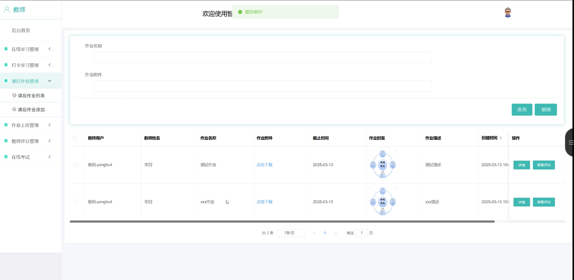 课后作业管理:发布和管理课后作业,教师可以查看学生作业的提交情况。