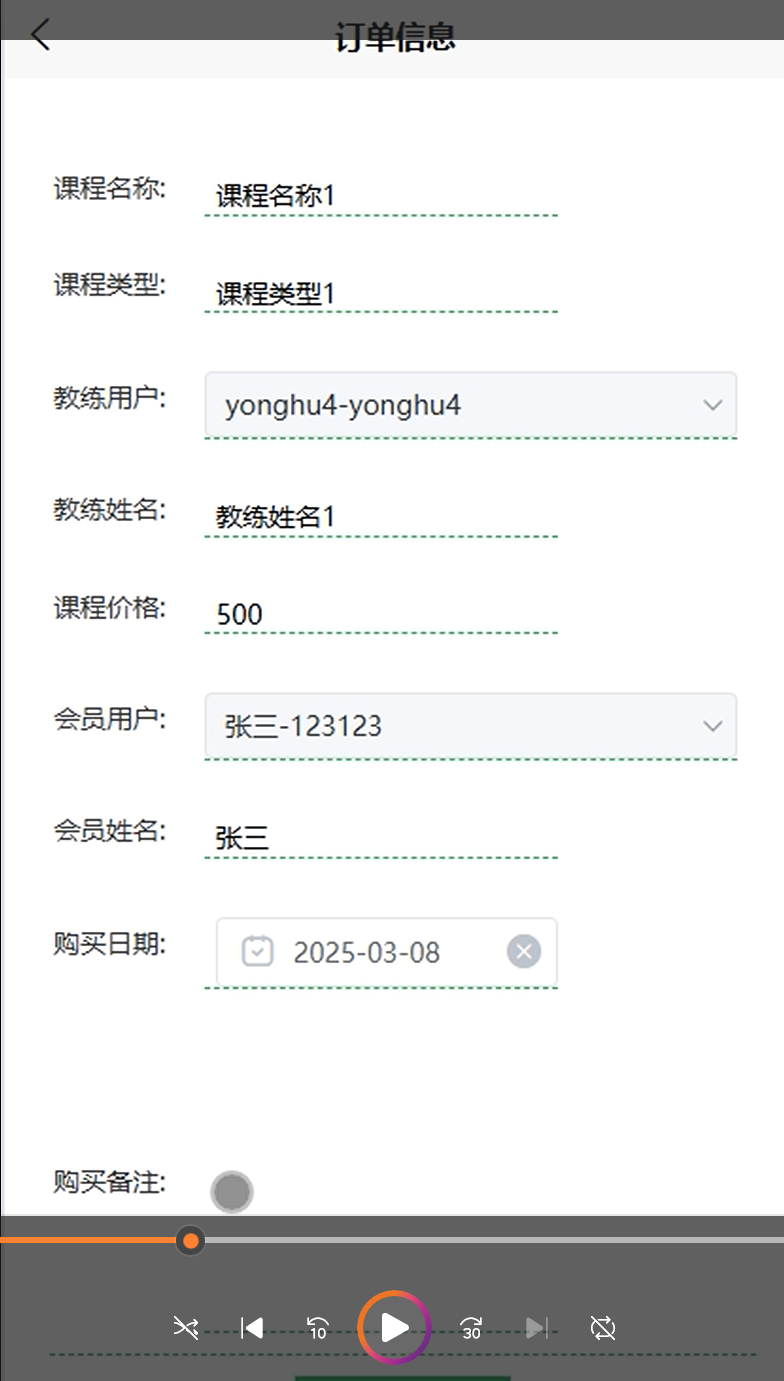 - 订单信息管理:教练可以查看和管理会员的课程订单,确保会员的课程需求得到满足。
