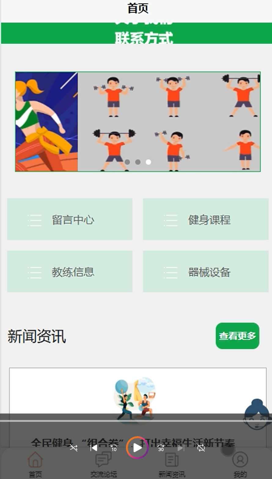 - 新闻资讯:提供健身房最新动态、健身相关资讯、行业新闻等,帮助会员及时了解相关信息。