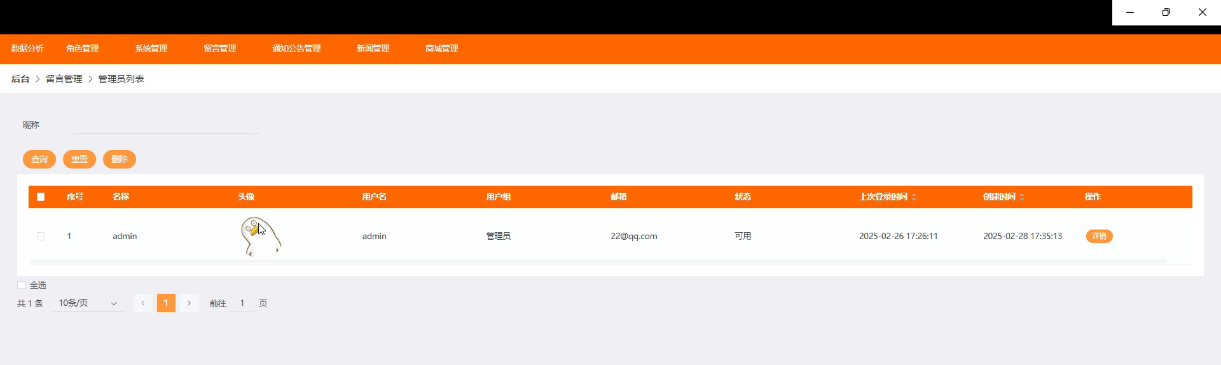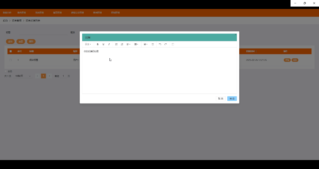 留言管理模块允许管理员查看和处理用户在平台上提交的留言、建议或投诉。管理员可以根据留言内容进行分类处理,快速回复用户问题或解决用户提出的困扰。界面如下所示。