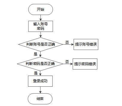 用户访问系统,进入登录页面,入其用户名和密码,后端服务接收登录请求,验证用户提供的用户名和密码是否匹配数据库中存储的信息,验证通过即可登录成功。登录流程图如下图所示。