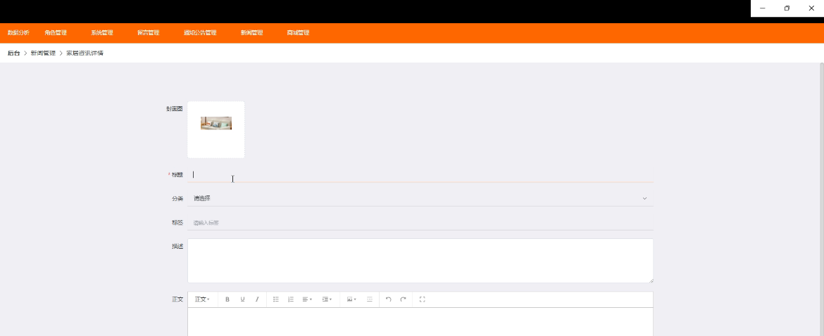 图5.12家居资讯添加界面设计