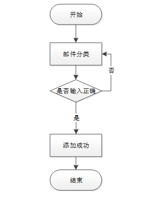 添加邮件分类功能,输入邮件标签、邮件类型、邮件正文等信息,并校验输入是否正确,邮件分类添加流程图,如图所示: