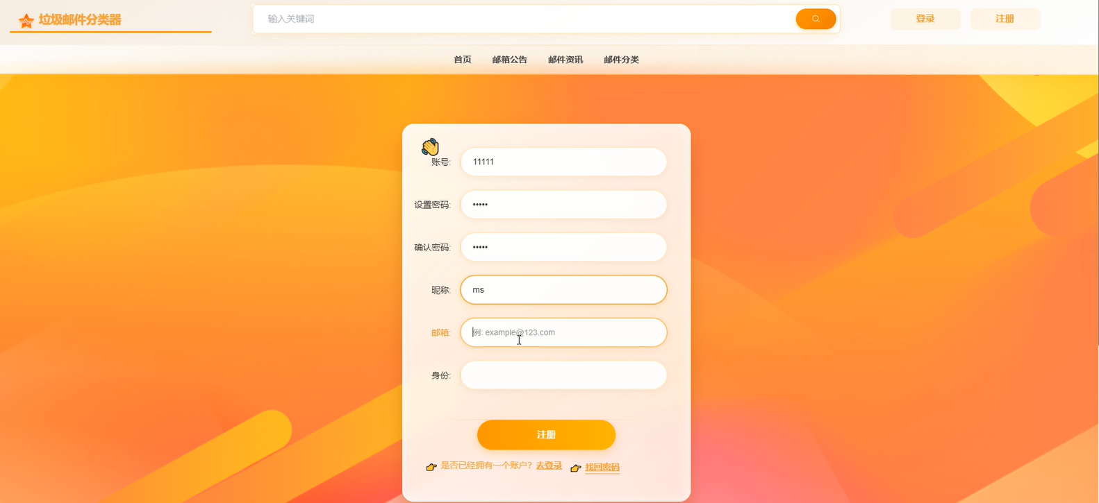 这个项目的顺利完成离不开指导老师和同学们的支持与帮助。他们的建议和指导为项目的按时完成提供了重要保障。通过这次开发,我学到了很多技术上的提升,该系统仍有改进的空间,受限于当前的专业知识水平,系统可能还存在一些不足之处。但希望在未来有机会进一步优化和完善这个系统,使其能够真正应用于实际场景中,为用户提供更有效的垃圾邮件过滤服务。这不仅是对我们所学知识的一次检验,也是对未来工作的一个激励。