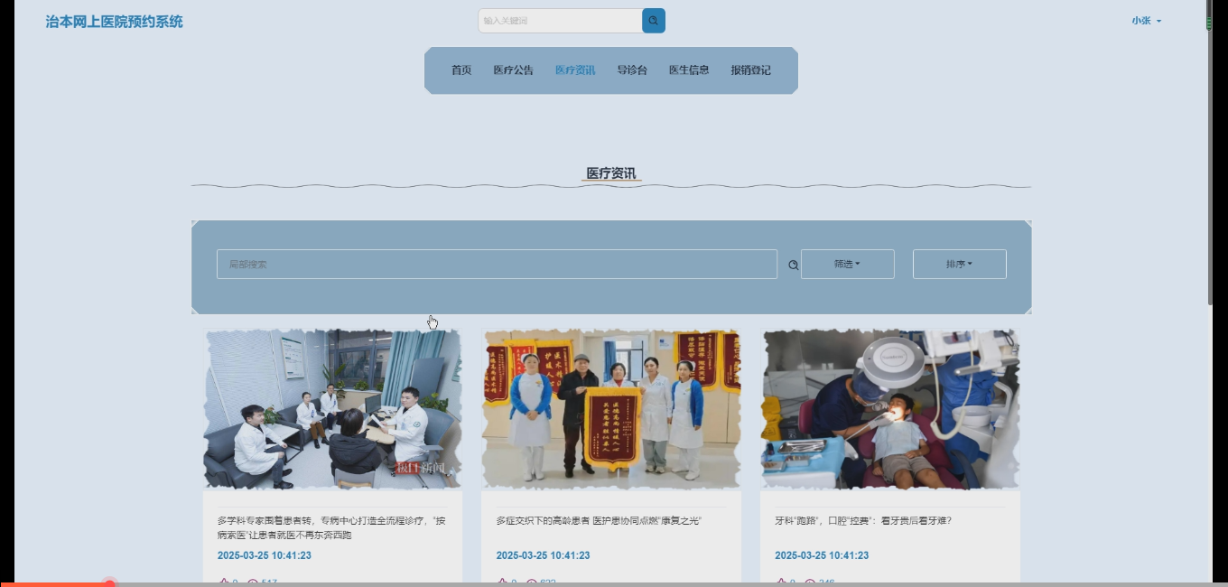 关键词:治本网上医院预约系统;SpringBoot;Vue;MySQL
