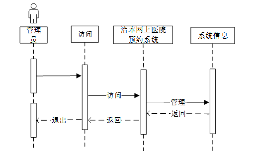 管理员通过访问系统发起请求,系统接收访问后转向系统信息模块进行管理操作。管理完成后,系统返回管理结果至系统,最终反馈给管理员,管理员可选择退出。管理员管理系统信息时序图如图4-6所示。