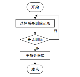 用户选择需要删除的记录后,系统判断是否确认删除。若未确认,返回选择环节;若确认删除,则更新数据库,删除对应记录,完成操作后流程结束。删除信息流程图如图3-8所示。