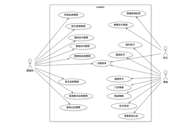 为了提高系统的安全性和可维护性,本系统设置了患者用户、医生用户和管理员用户。患者用户和医生用户账号可通过在线注册获取,而管理员账号则由系统设置。系统管理员的主要职责是对系统进行全面管理,包括但不限于用户权限设置、资源调度、处理审核请求等;医生用户专注于医疗活动的执行,如查看预约信息、查看排班等;患者用户享受便捷的医疗服务,如在线挂号、取消挂号、缴费、取消缴费及签到等。本医院在线挂号系统的实现不仅提升了医疗服务的质量和效率,还显著改善了患者的挂号就医体验。通过严格的测试和持续优化,系统已具备较高的稳定性和安全性,能够满足现代医院信息化管理的需求。