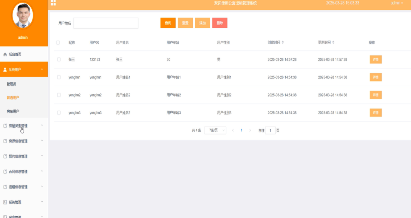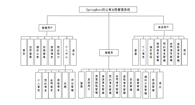 SpringBoot的公寓出租管理系统的设计与实现包含普通用户、房东用户和管理员三个角色划分,每个角色对应的主要功能如下: