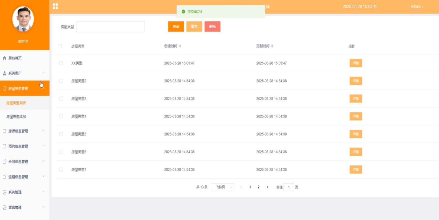 (3)房屋类型管理:管理所有房屋类型信息,包括添加、删除和修改房屋类型信息。