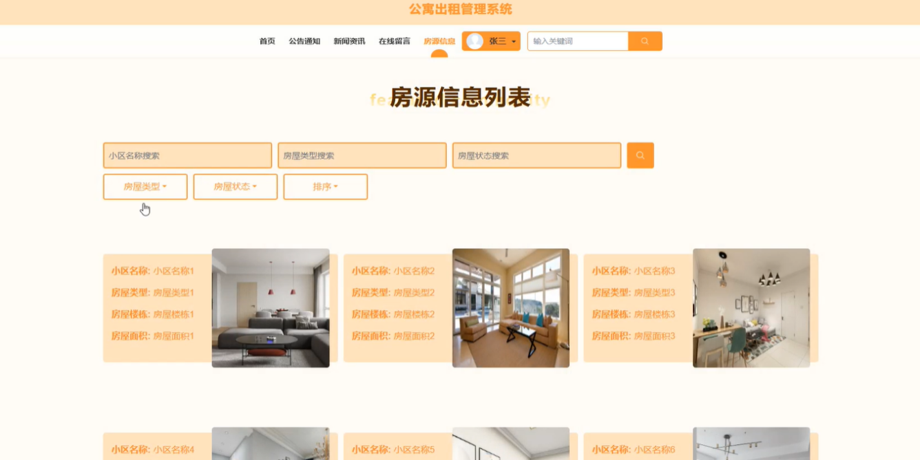 (1)首页:展示的是轮播图、新闻资讯、房源信息等推荐。