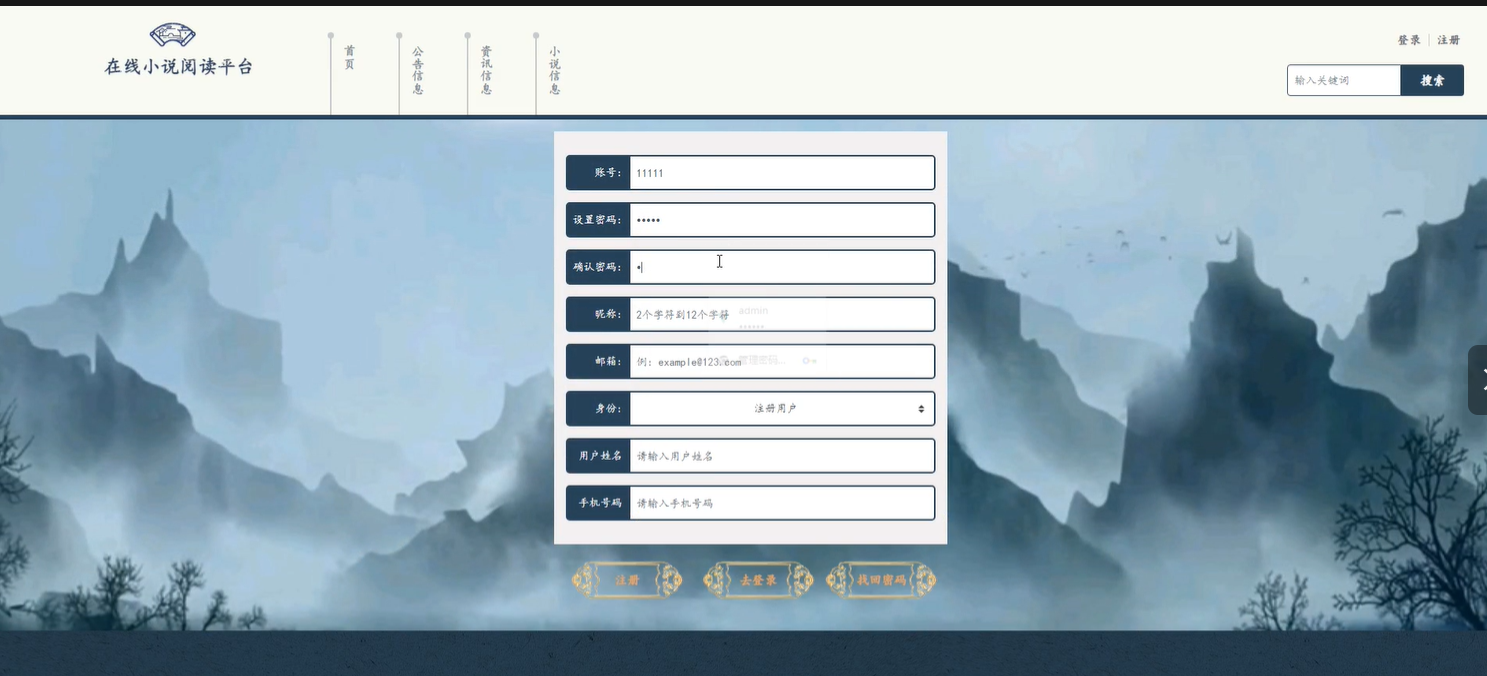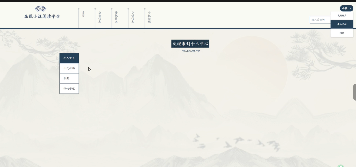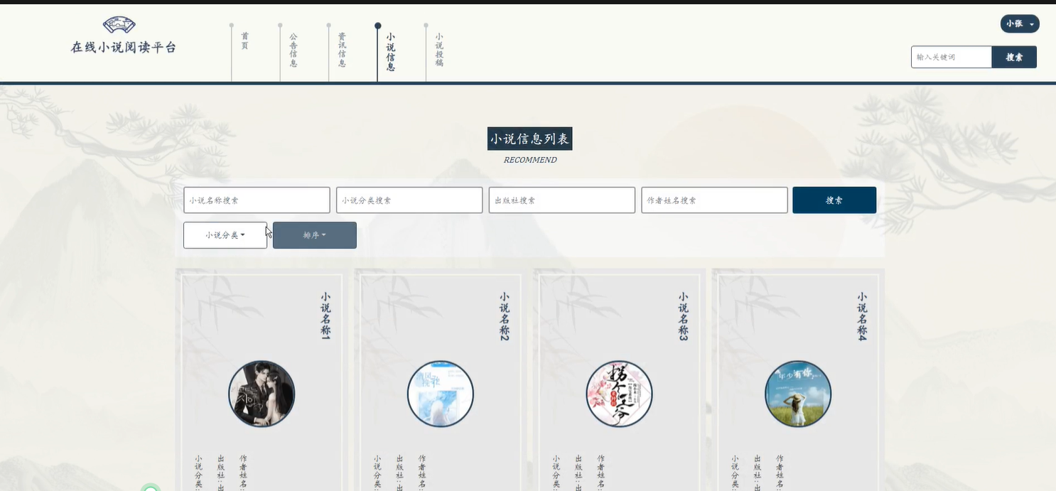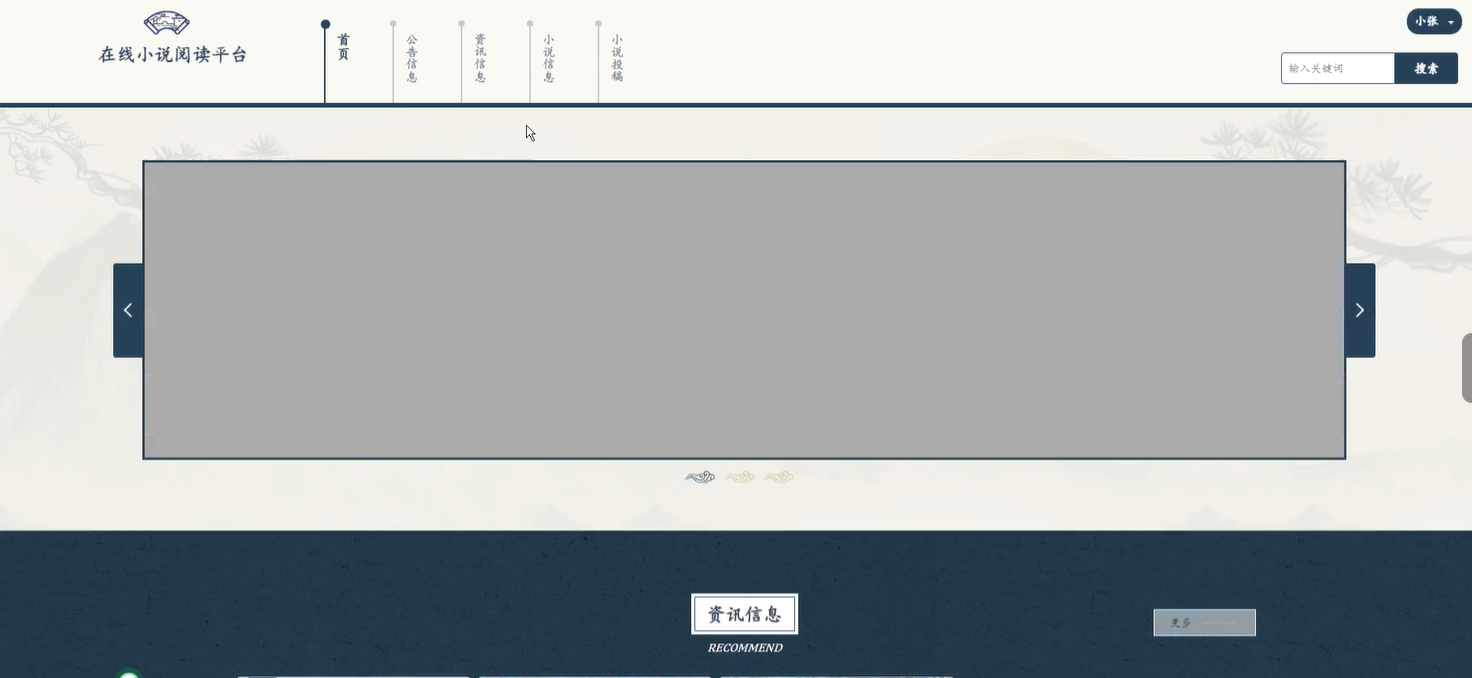 (3)首页:展示平台的轮播图、热门小说推荐、最新小说发布、个性化推荐等信息。