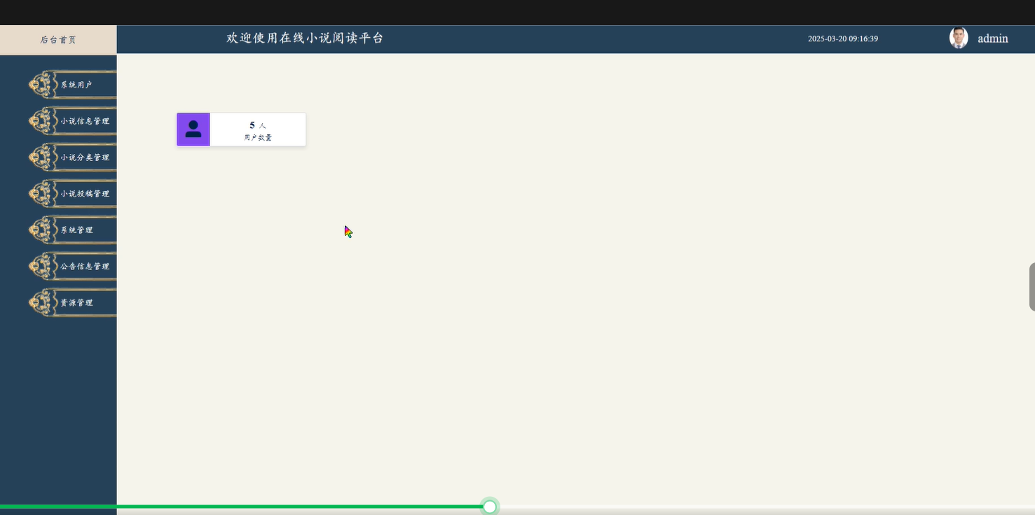 在线小说阅读平台的毕业设计项目已经圆满完成。该平台不仅展示了开发者在技术能力与业务理解方面的综合素质,还为在线小说阅读行业提供了创新的解决方案。