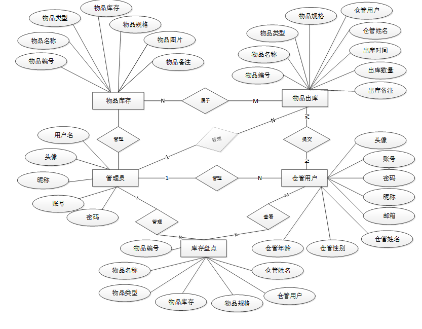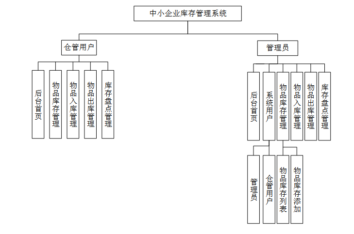 本系统的功能设计将重点围绕仓管用户、管理员两大用户展开,具体功能模块如下:
