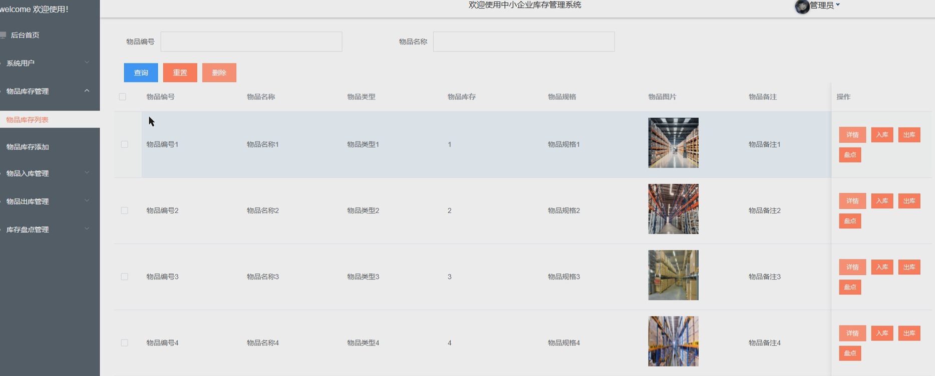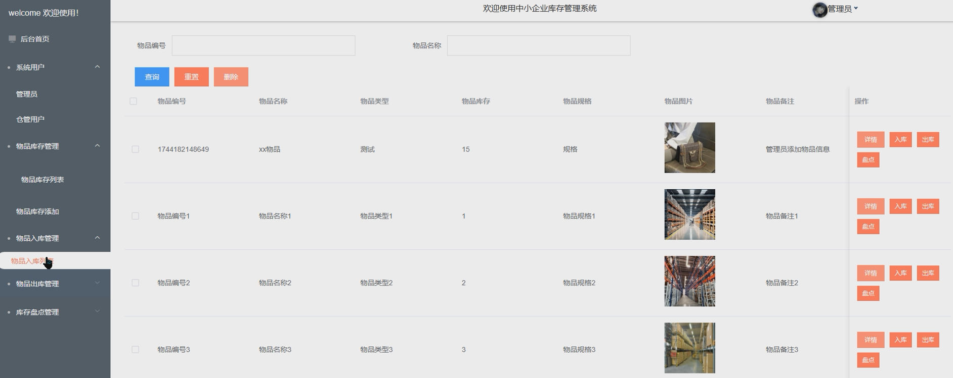 - 物品入库管理:管理员负责物品的入库管理,录入新入库物品并更新库存数据。确保入库过程的高效和准确。