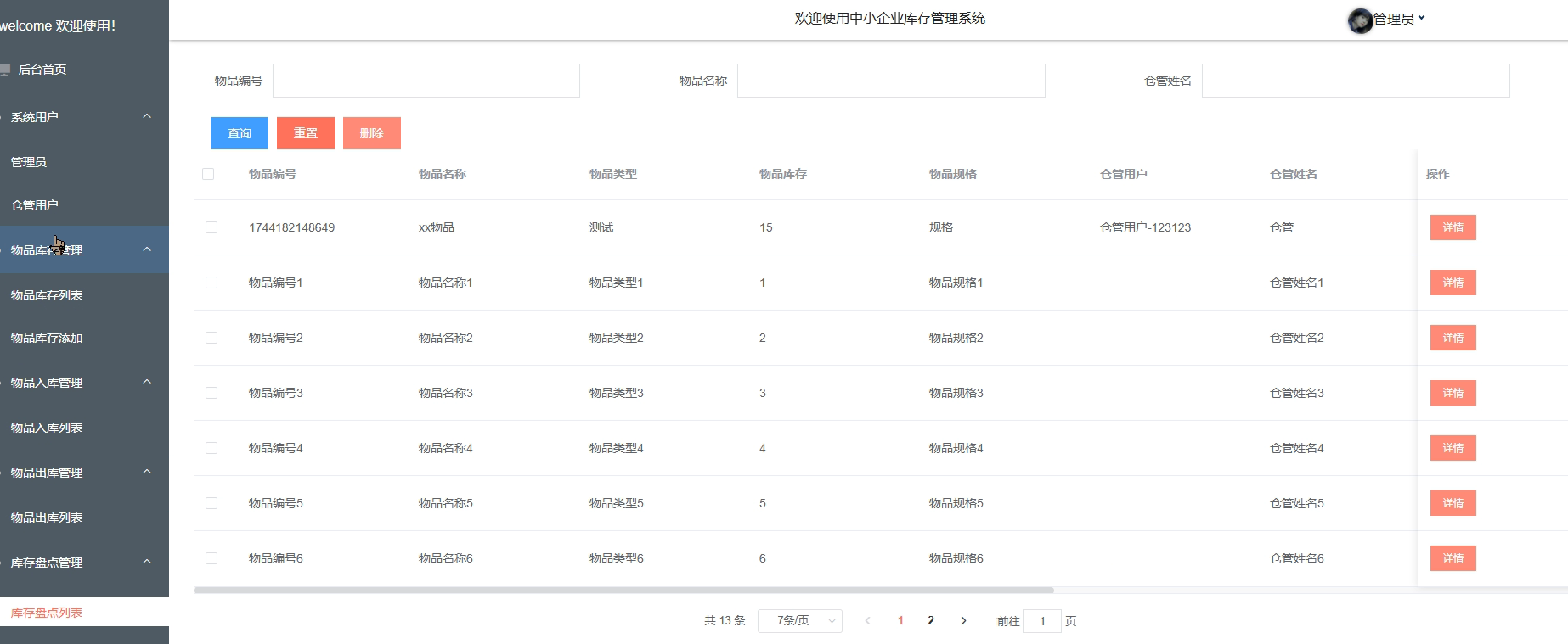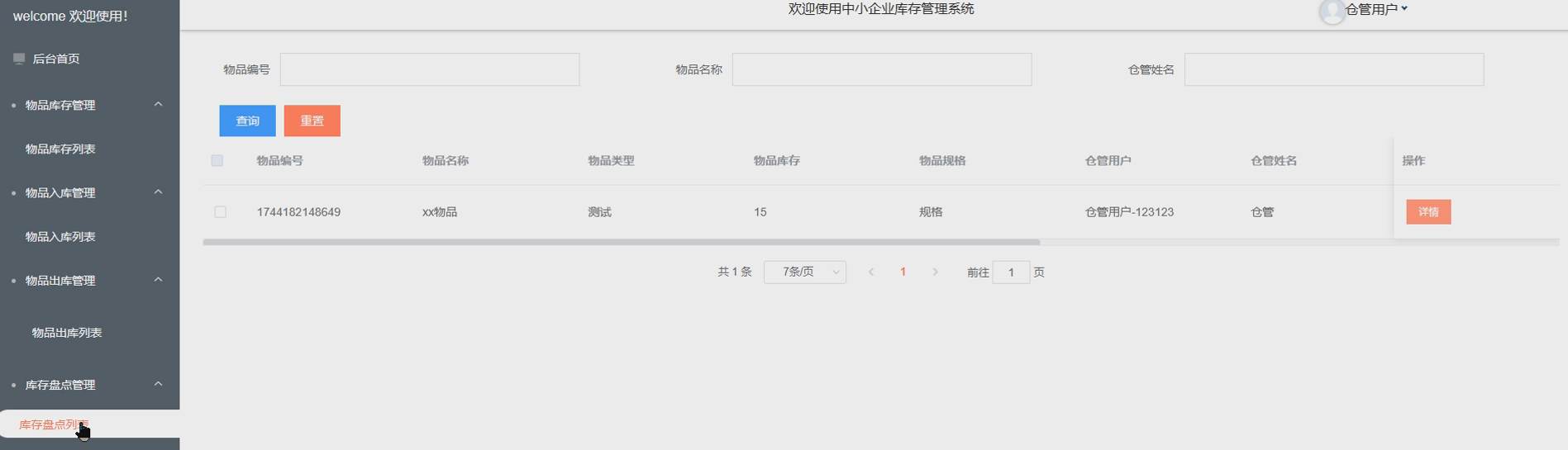 | 测试流程 | 点击系统的物品库存管理 |
