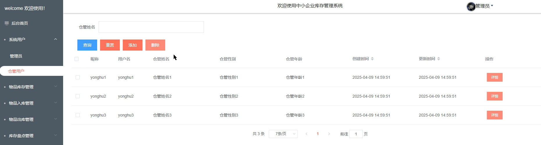 - 系统用户管理:管理员可以管理系统用户,包括创建、删除、编辑用户信息和权限设置。管理员能够分配不同角色(如仓管用户)和权限,确保系统操作的安全性与合规性。
