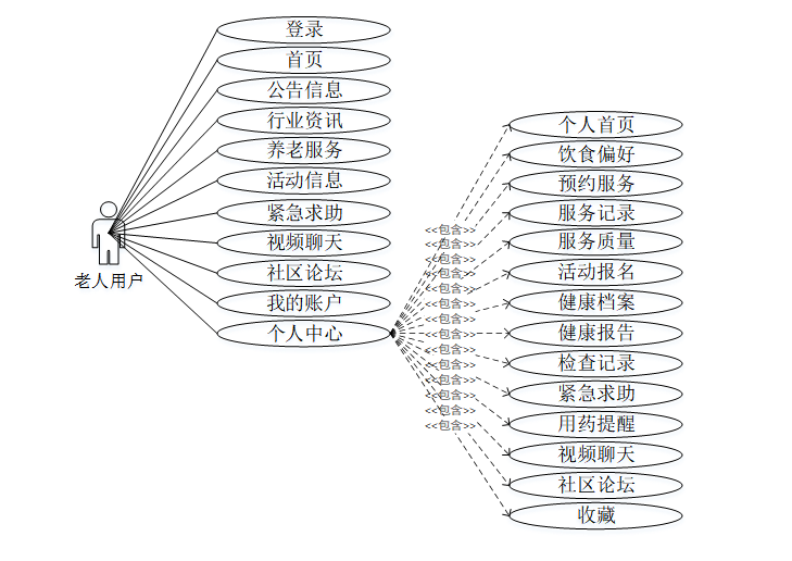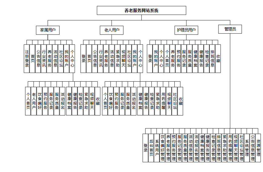 养老服务网站系统划分为了前端模块和后端模块两大部分。