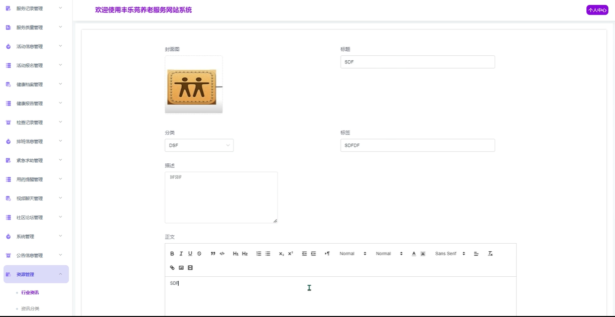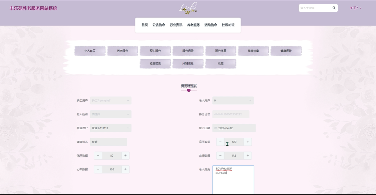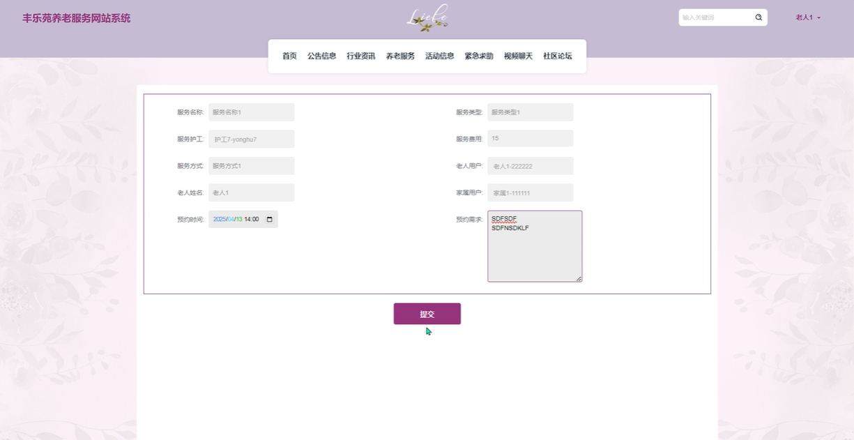 The Fengleyuan Elderly Care Service Website System is developed based on the SpringBoot framework, dedicated to providing comprehensive online services for the elderly. Through this system, users can easily understand the service content, facility conditions, and check-in information of nursing homes. The system ensures that elderly people and their families can easily browse relevant information through a simple and friendly interface design, while supporting online consultation, reservation, check-in application and other functions, improving the convenience and efficiency of services.