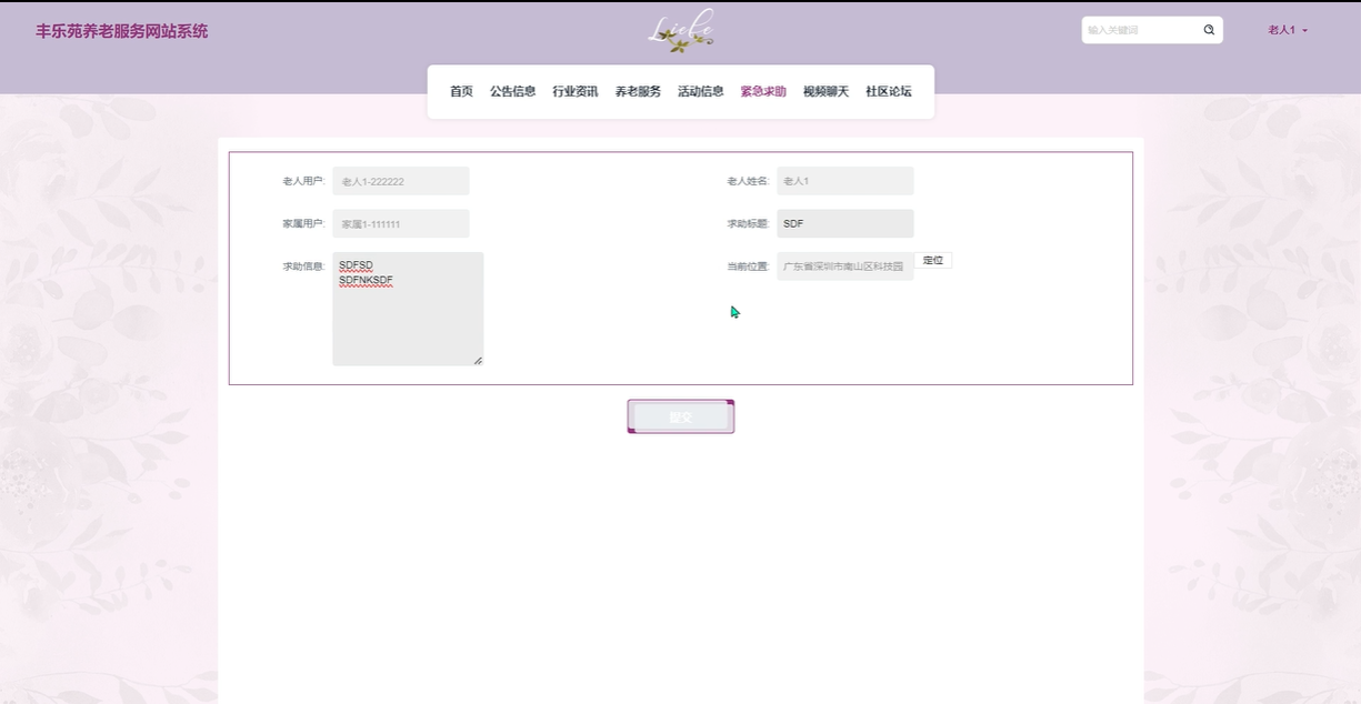 紧急求助: 提供紧急求助功能,老人用户可以填写求助信息、定位当前位置,并提交求助请求。