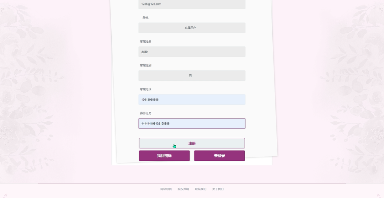 公告信息: 提供网站公告、关于我们、联系方式、网站介绍等信息,家属用户可在此获取重要信息和联系网站支持。