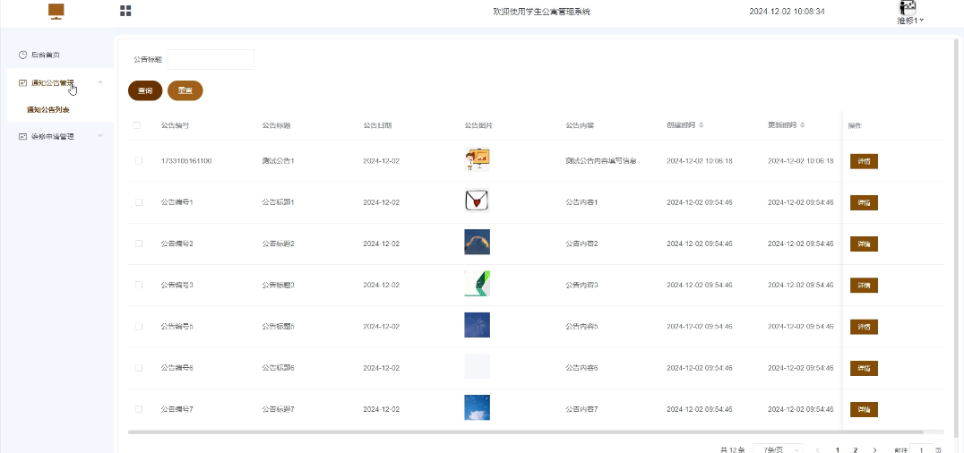 - 通知公告管理:学生用户可以查阅通知公告信息,浏览通知公告详细内容。