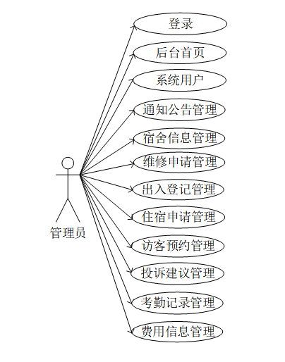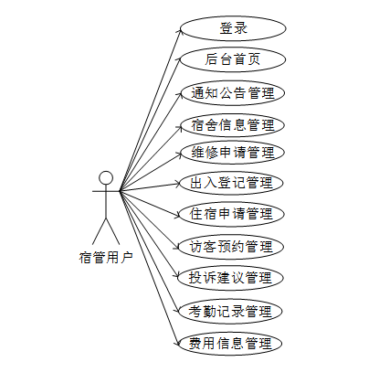 学生公寓管理系统宿管用户角色用例图如下所示。