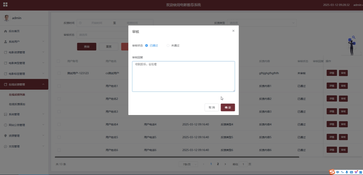 在线反馈管理:管理员可以查看并审核用户提交的在线反馈。管理员有权添加、搜索、查询、重置或删除反馈信息,处理用户反馈,并对平台服务进行优化。