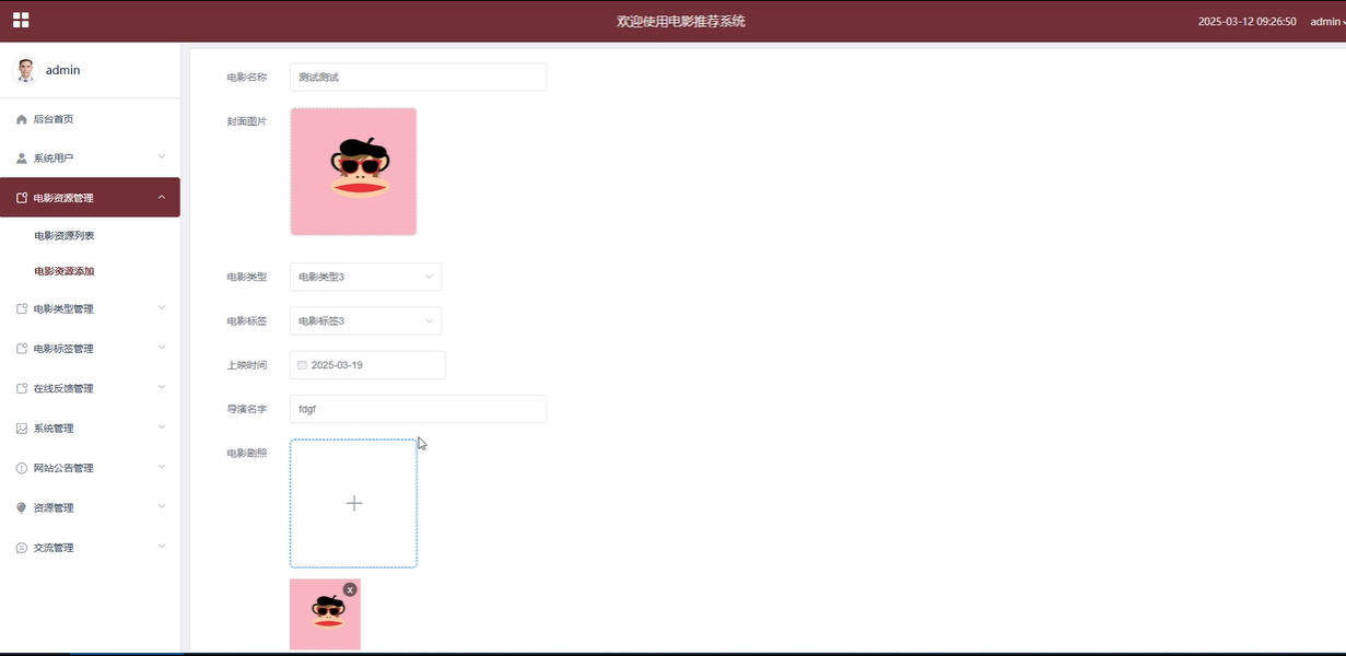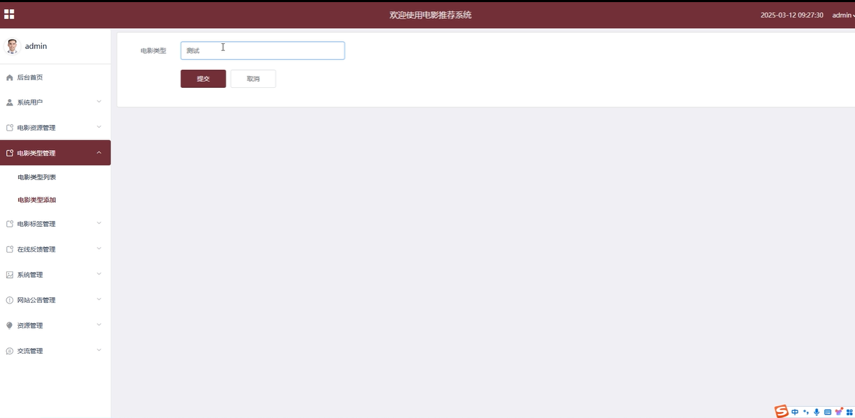 电影标签管理:管理员负责电影标签的管理,包括查看、搜索、添加、查询、重置和删除标签。标签帮助用户快速筛选电影,管理员需要确保标签的准确性和合理性。