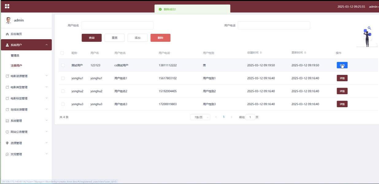 资源管理:管理员可以管理电影资讯,包括查看、修改资讯详情以及用户评论。管理员还可以对资讯进行增删改查,保证电影相关信息的实时更新和准确性。