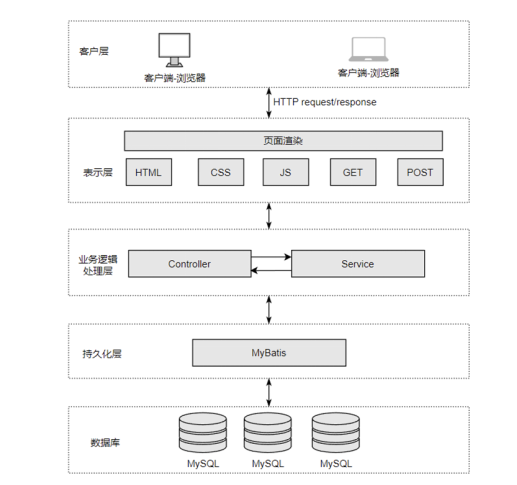 B/S(Browser/Server)架构是一种基于浏览器和服务器的应用架构模式。它以Web浏览器作为客户端,服务器端通过Web技术提供应用服务。客户端通过浏览器与服务器进行交互,用户无需安装专门的客户端应用程序,只需要通过互联网连接即可访问应用程序[1]。在B/S架构中,客户端主要承担用户界面的呈现和基本的输入输出功能,而核心的业务处理、数据存储等操作则由服务器端完成。这种架构的核心优势在于无需在每个客户端机器上安装或更新软件,只要用户的浏览器符合要求,就可以使用系统。