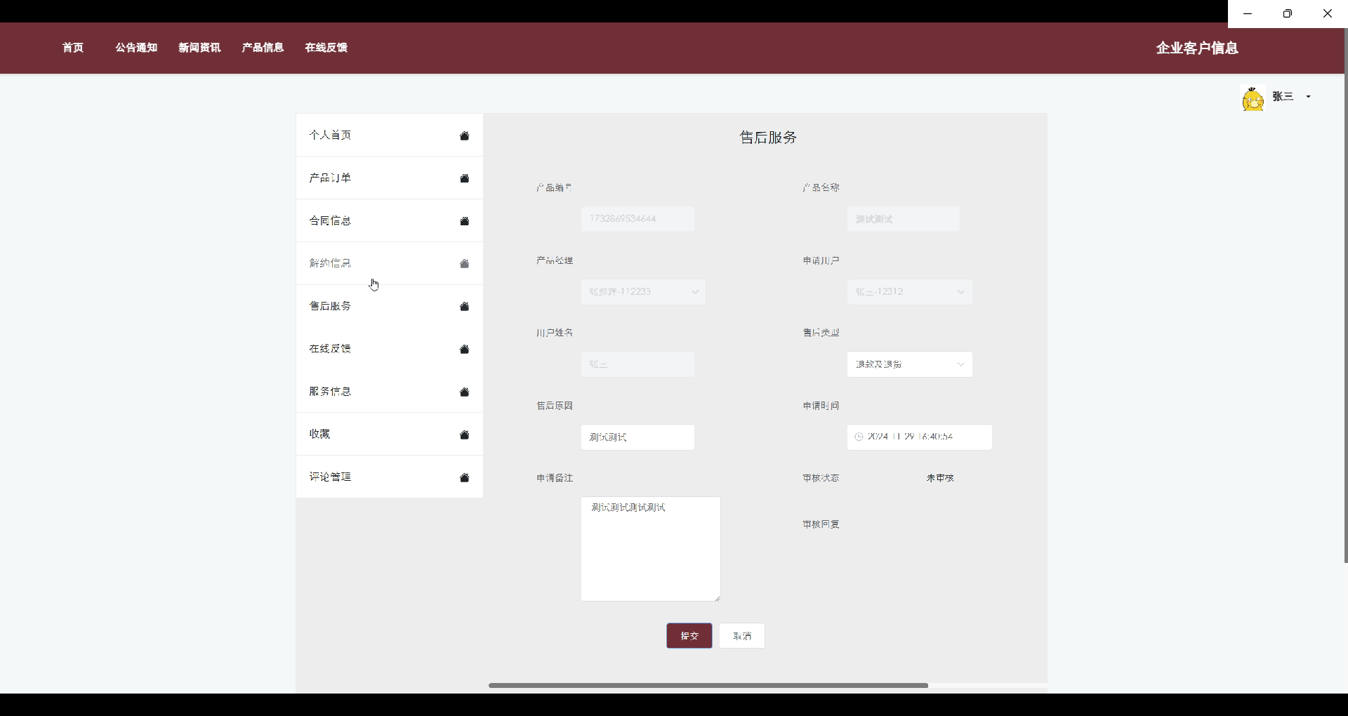 售后服务功能让用户可以轻松申请售后服务。用户只需选择需要服务的产品,填写问题描述,系统即自动生成售后申请。整个过程高效透明,确保用户的需求得到快速响应和解决。界面图如下所示。