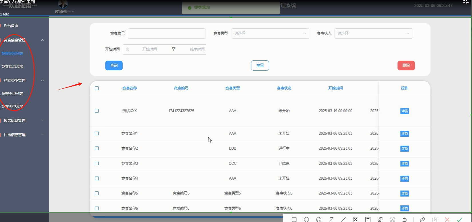 5.3.1竞赛信息管理界面