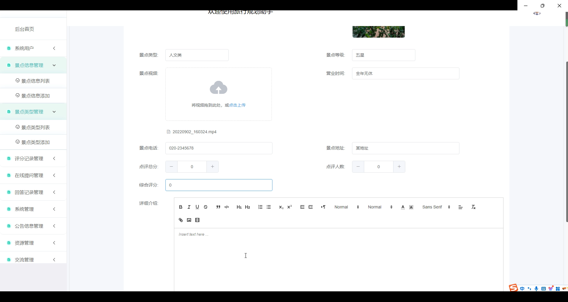 景点信息管理:负责景点详情的增删改查,确保信息准确且实时更新。
