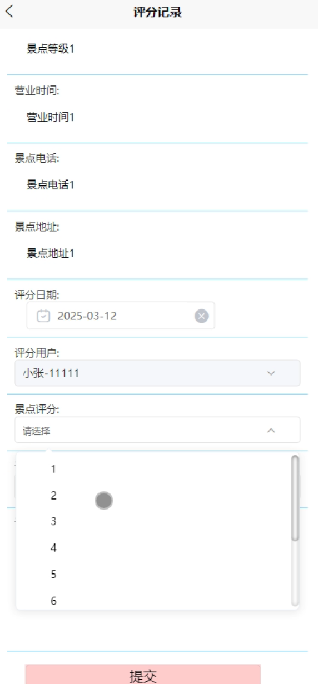 | 预期结果 | 评分成功提交后,显示感谢提示,并更新景点的平均评分。 |